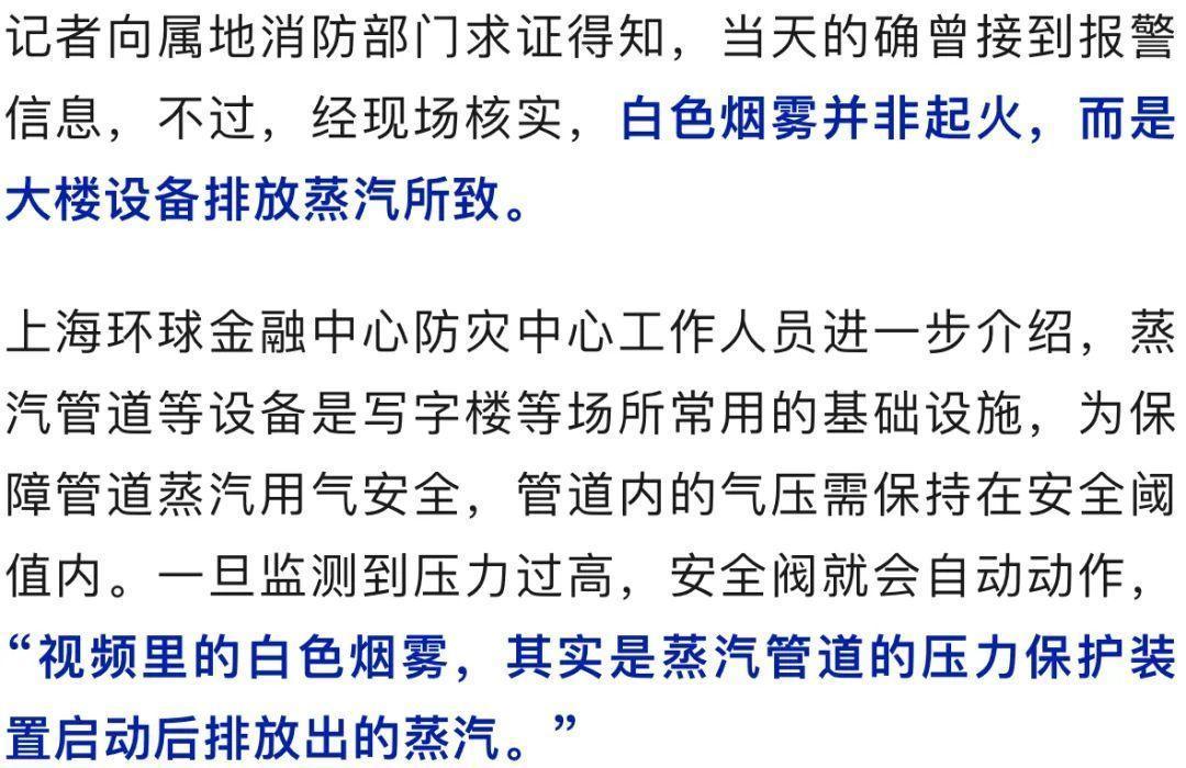 近几日社交平台上一则上海环球金融中心高层“疑似着火”的视频引发热议视频里建筑高层外侧有白色烟雾腾起不少网友据此猜测发生了火情
